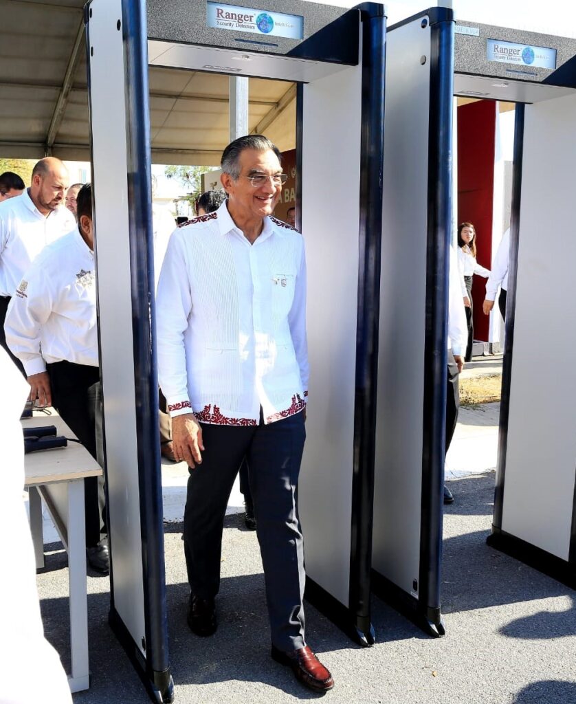 Ciudad Victoria, Tamaulipas.- El Gobierno del Estado, reforzará las condiciones de seguridad al interior de los Centros de Ejecución de Sanciones con la entrega de 14 arcos detectores de metales, que realizó el gobernador Américo Villarreal Anaya, junto con el secretario de Seguridad Pública Sergio Hernando Chávez García, luego de la ceremonia cívica de honores, este lunes, en las instalaciones del C-3.