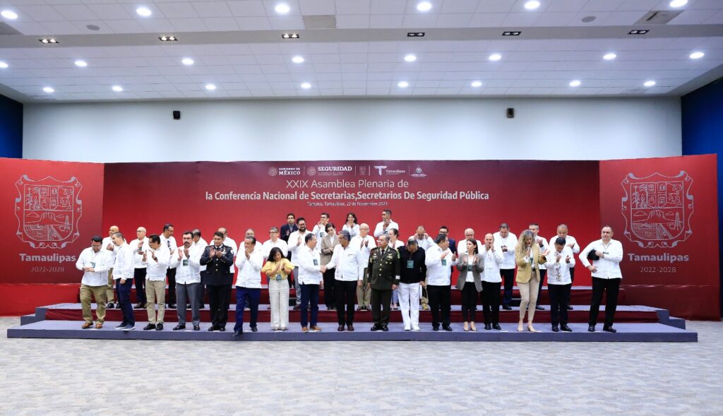 Durante la XXIX Asamblea Plenaria de la Conferencia Nacional de Secretarias y Secretarios de Seguridad Pública, celebrada en esta ciudad y a través de un mensaje virtual, la funcionaria federal puso de ejemplo el trabajo del gobernador de Tamaulipas para lograr mejores resultados y que la incidencia delictiva continúe a la baja.