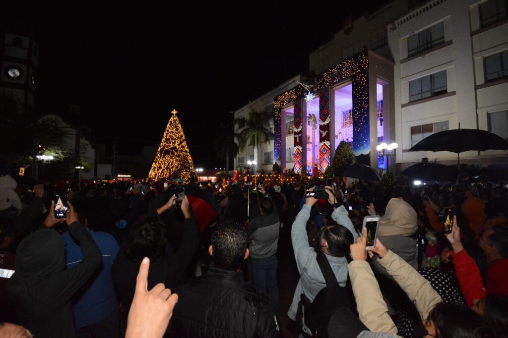 Con la ayuda de todos los presentes y tras realizar el respectivo conteo, llegó el momento esperado y se encendieron todas las luces que adornan el majestuoso pino navideño de 16 metros de altura y la Villa Navideña.