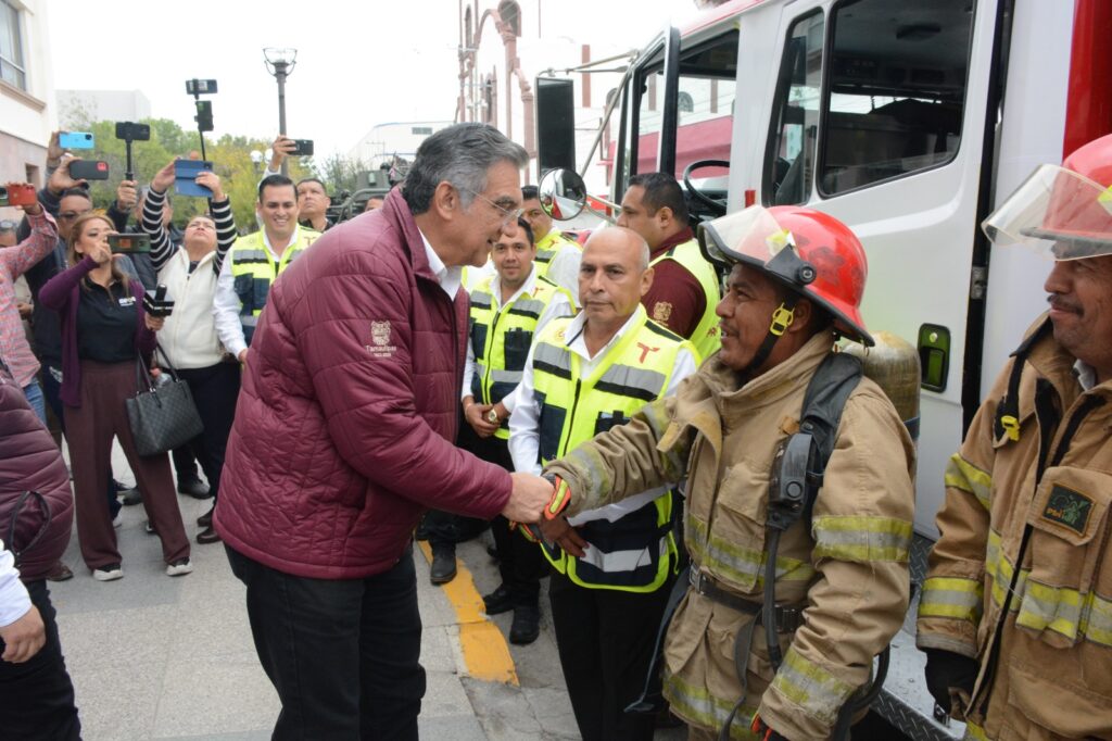 Ciudad Victoria, Tamaulipas. – Para que las corporaciones de auxilio cuenten con equipo y unidades que permitan brindar ayuda a la población en situaciones de emergencia, el gobernador de Tamaulipas, Américo Villarreal Anaya hizo entrega de un camión contra incendios a la Coordinación Estatal de Protección Civil de Tamaulipas.