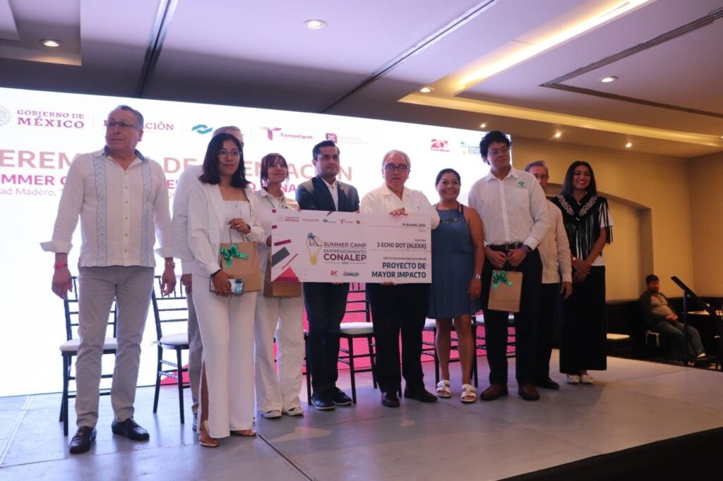 Ciudad Madero, Tamaulipas.– Para culminar sus actividades, se realizó la premiación a los proyectos ganadores que participaron en el Summer Camp Emprendedores CONALEP 2024, que se efectuó en Ciudad Madero durante el jueves 13 y viernes 14 de junio.