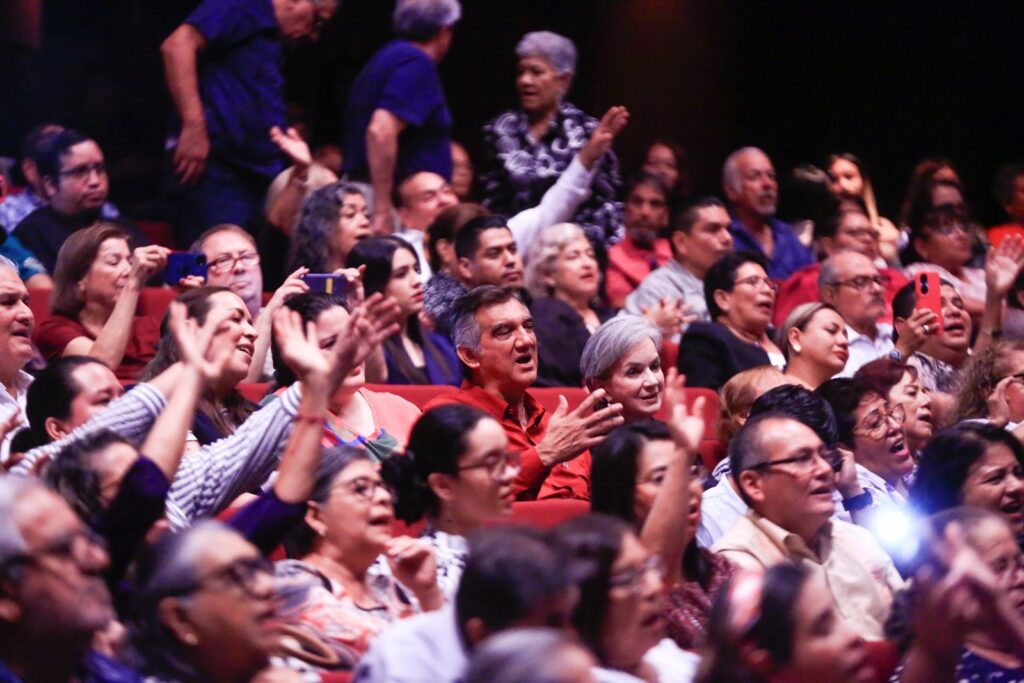 Acompañado por la presidenta del DIF Tamaulipas, doctora María de Villarreal, el gobernador disfrutó del concierto de gala durante dos horas en el teatro Amalia G. de Castillo Ledón, y recordó los inicios de la rondalla y su participación en los congresos médicos organizados en el Hospital General.