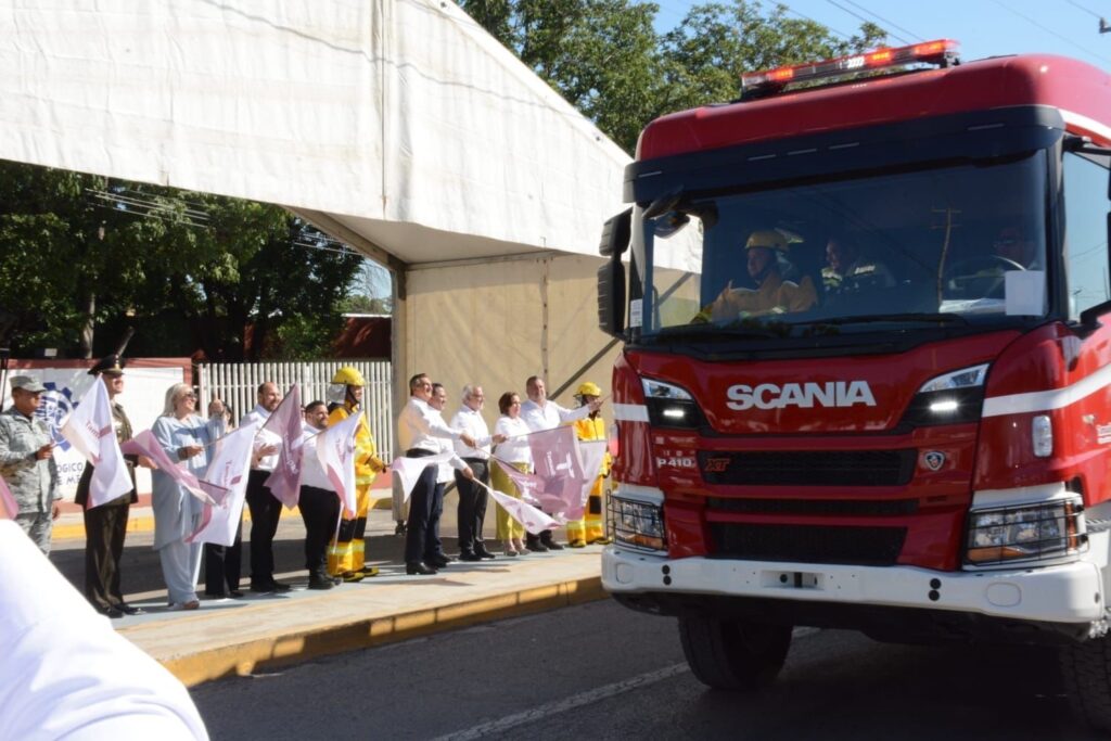 Al término de la ceremonia, el gobernador entregó al coordinador estatal de Protección Civil, Luis Gerardo González de la Fuente, un camión multipropósito contra incendio, rescate y extracción vehicular, así como 70 equipos de protección personal; 8 sopladoras; 8 motosierras; 5 levantadores mecánicos; 5 herramientas sierra sable, 2 generadores de energía y 1 bambi bucket (contenedor de agua aéreo) con capacidad de hasta 1,000 litros de retardante.