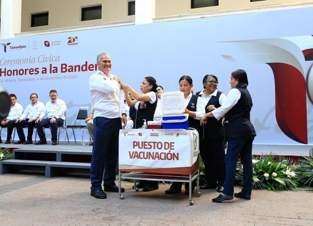 Al presidir la ceremonia cívica de honores, celebrada este lunes en la explanada interior de Palacio de Gobierno, el gobernador del estado puso en marcha la campaña de vacunación por la temporada invernal, en la que están garantizados los insumos para que se apliquen en forma gratuita y aseguró que los límites de oportunidad en la atención para recuperar la salud de una persona deben estar basados en lo que ha avanzado la ciencia y la tecnología y no en la voluntad humana o institucional.