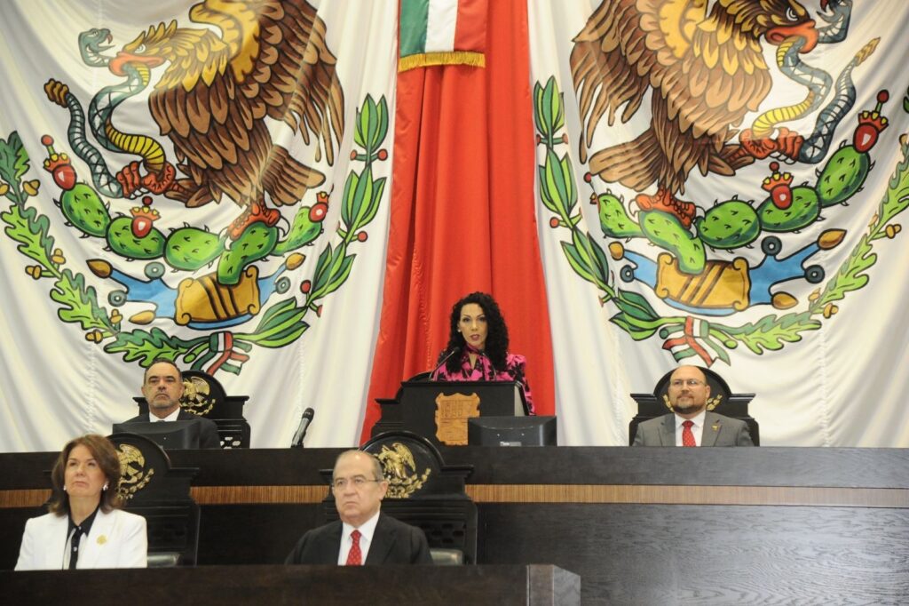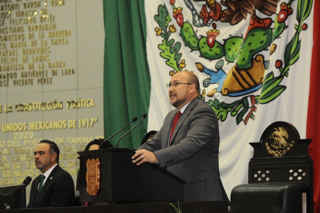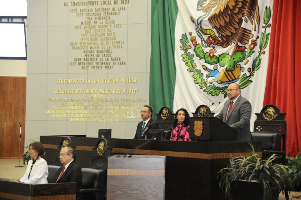 En sesión pública y solemne de la Legislatura 66, celebrada la mañana de este sábado, el secretario general de Gobierno dio cumplimiento a lo dispuesto en el artículo 44, párrafo segundo, de la Constitución Política de Tamaulipas y entregó a la diputada Cynthia Lizabeth Jaime Castillo, presidenta de la Mesa Directiva, el documento que puntualiza un informe pormenorizado con las políticas públicas y marcos estratégicos establecidos en el Plan Estatal de Desarrollo 2023-2028, en el periodo comprendido entre marzo de 2024 y febrero del presente año.