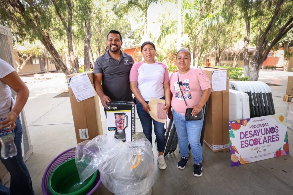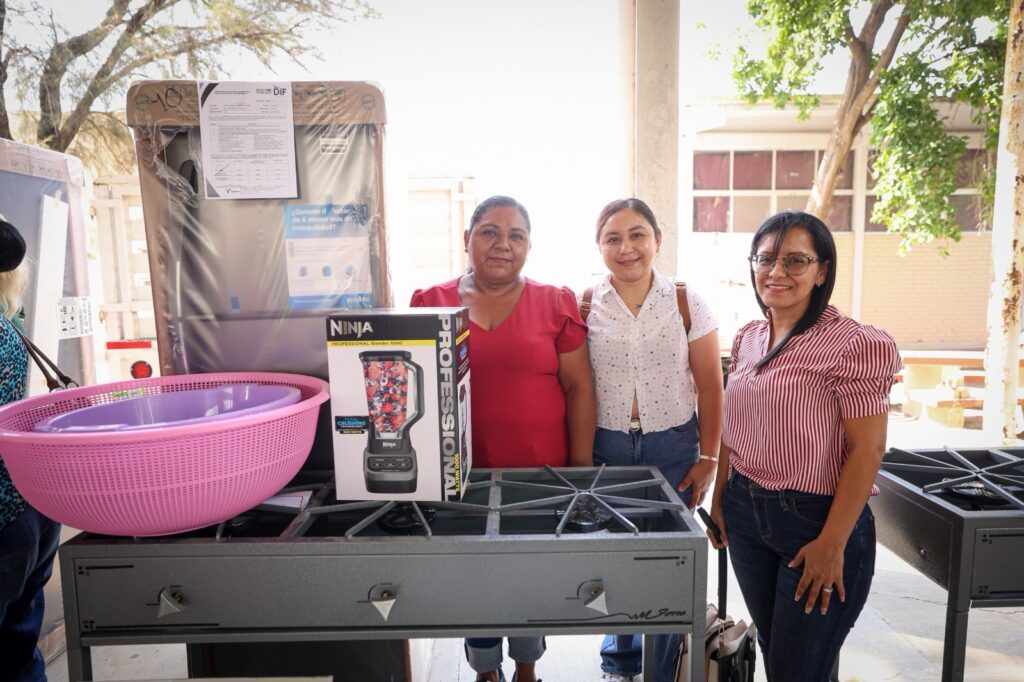 Refrigeradores, estufas, licuadoras, ollas, sartenes, entre otros enseres fueron entregados en escuelas de los municipios de Casas, Padilla y Güémez, en la región centro de Tamaulipas, para fortalecer la preparación y entrega diaria de raciones alimenticias calientes con calidad nutricia.