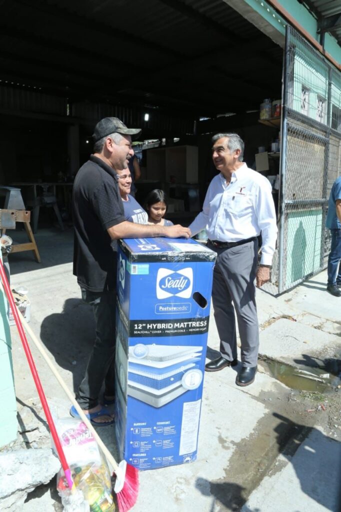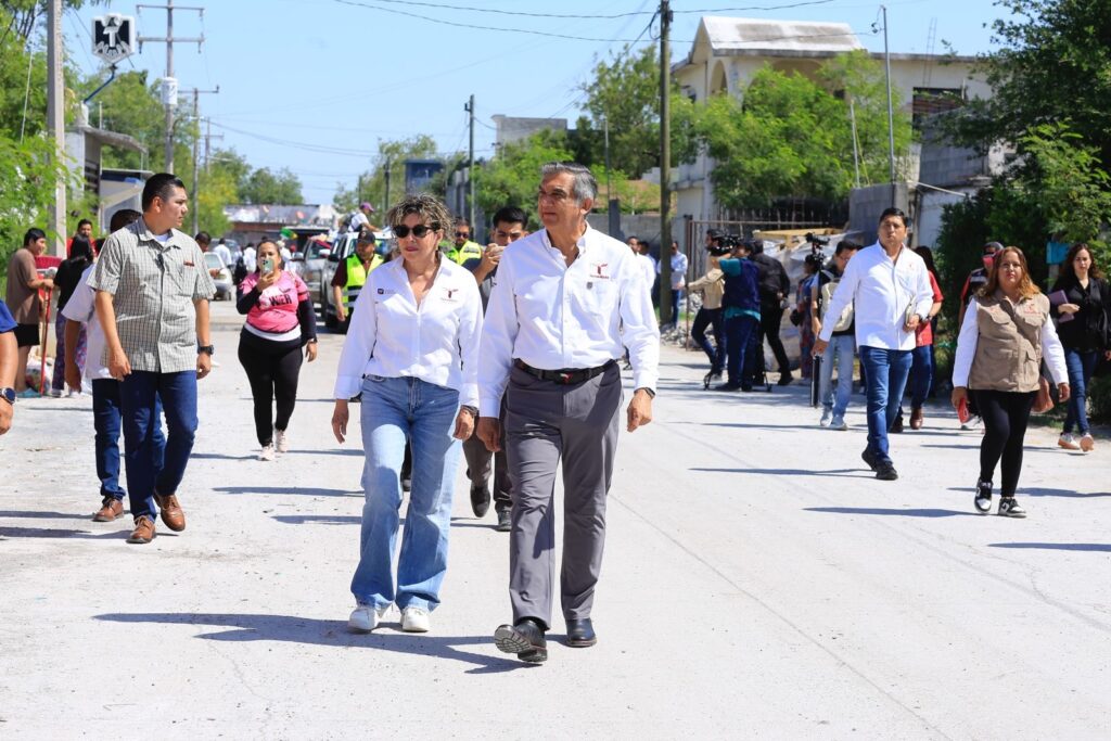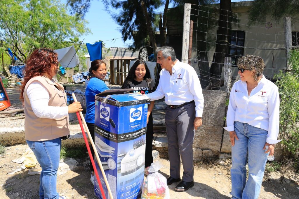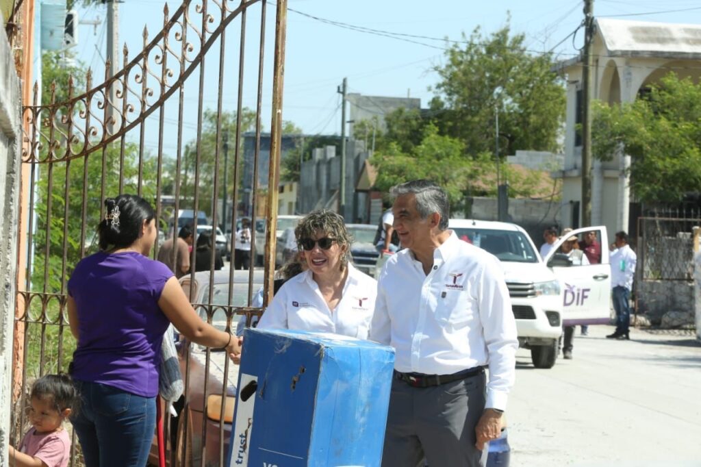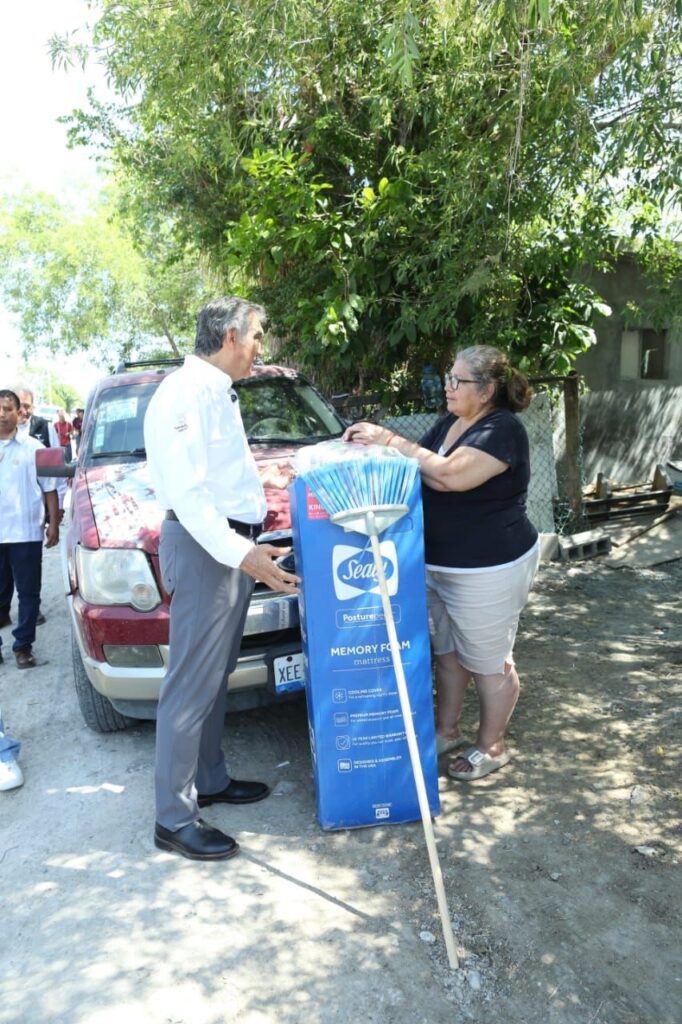 Reynosa, Tamaulipas. – El gobernador Américo Villarreal Anaya y la presidenta del DIF Estatal, doctora María de Villarreal, encabezaron este sábado una jornada más de entrega de apoyos a familias que fueron afectadas por las lluvias en la colonia Juan Escutia, de Reynosa.