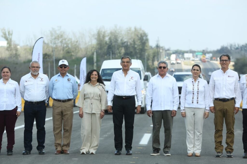 Acompañado por los alcaldes de Altamira, Armando Martínez y de Madero, Erasmo González y la alcaldesa de Tampico, Mónica Villarreal, el gobernador del Estado, cortó el listón inaugural del puente en el que se invirtieron más de 293 millones de pesos.