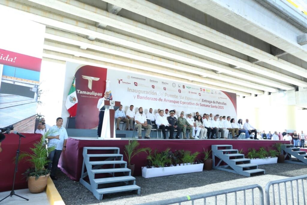 Altamira, Tamaulipas. – El gobernador Américo Villarreal Anaya inauguró el puente “La Esperanza”, una obra que permaneció en el abandono por casi 15 años y aseguró que esta construcción se asemeja al futuro de Tamaulipas porque tiene “bases sólidas y firmes”.