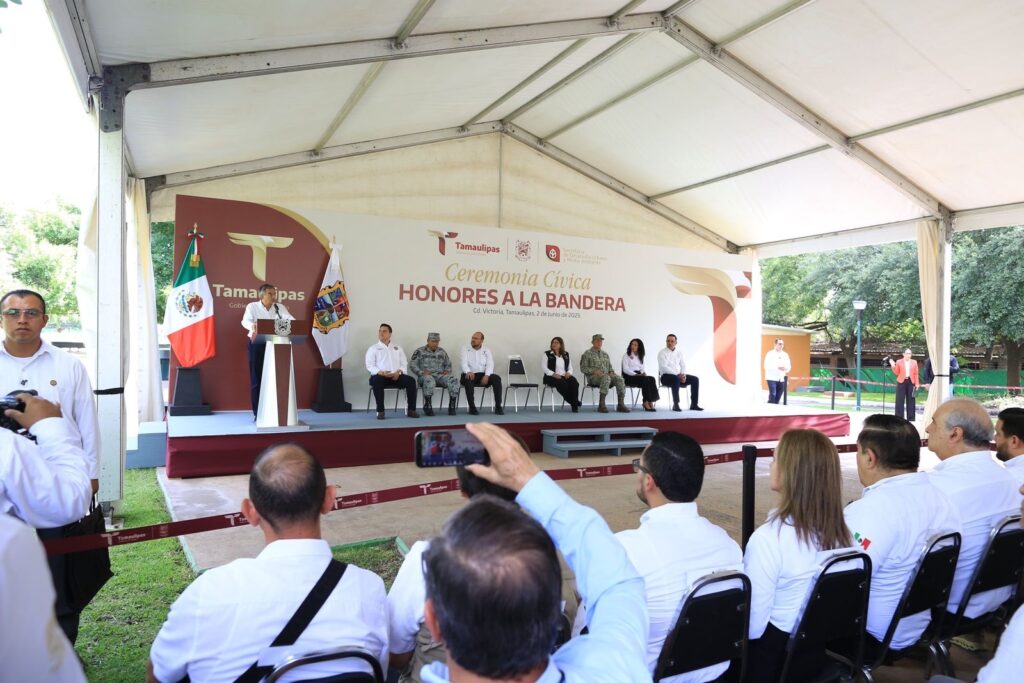 Al presidir la ceremonia cívica de honores, este lunes, en el emblemático parque y zoológico de Tamatán, en el marco de la conmemoración del Día Mundial del Medio Ambiente, el gobernador felicitó a las y los tamaulipecos por su participación en la jornada cívica democrática del domingo. “Sé que estamos del lado correcto de la historia”, expresó.