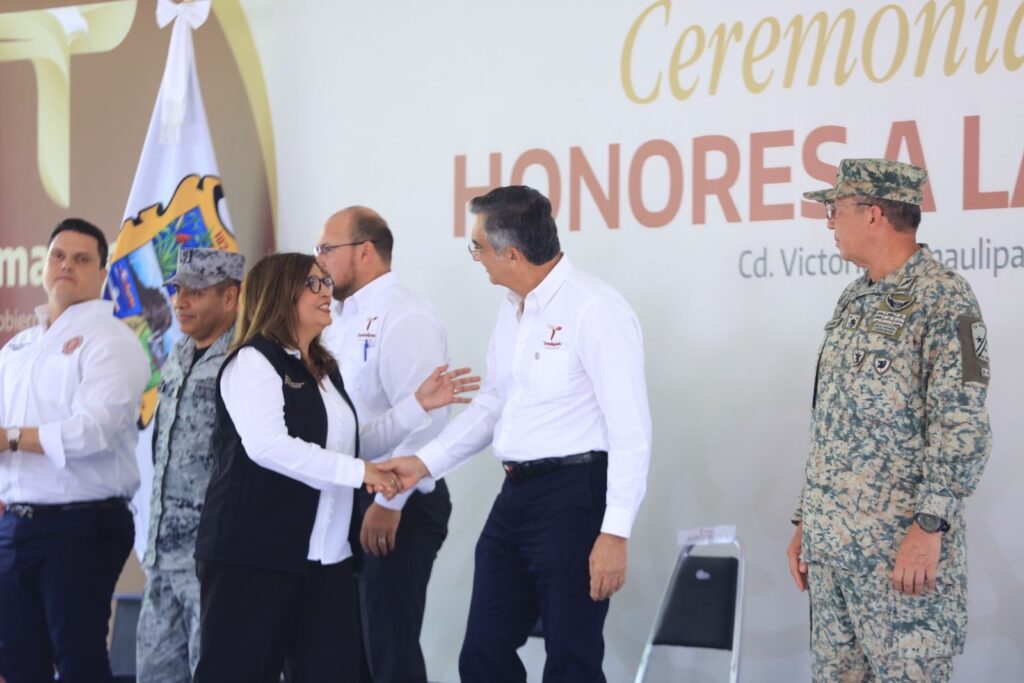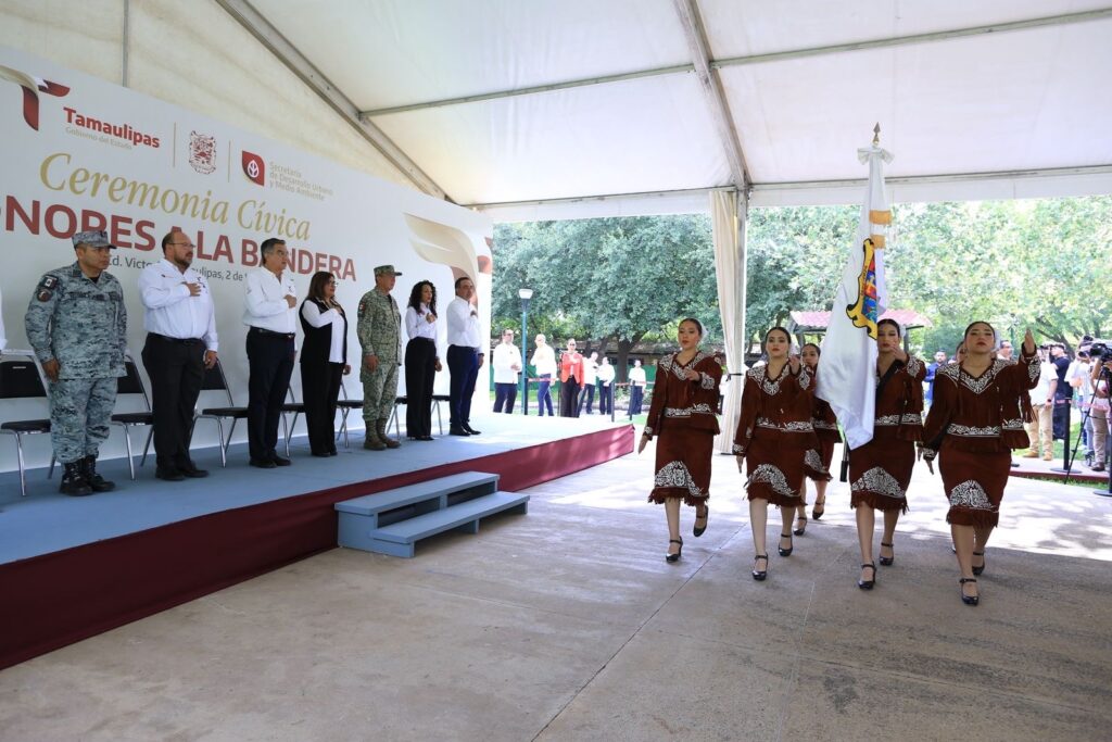 Al dar la bienvenida a la ceremonia cívica de honores, la secretaria de Desarrollo Urbano y Medio Ambiente, Karina Saldívar Lartigue, enfatizó que gracias a las políticas ambientales que impulsa el gobernador Américo Villarreal, Tamaulipas avanza hacia un modelo de desarrollo más equilibrado, responsable e incluyente, con un enfoque que coloca en el centro la justicia social, el respeto por la naturaleza y la acción frente al cambio climático.