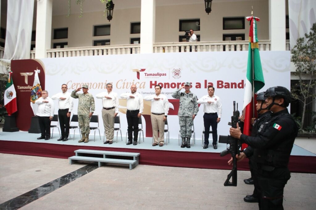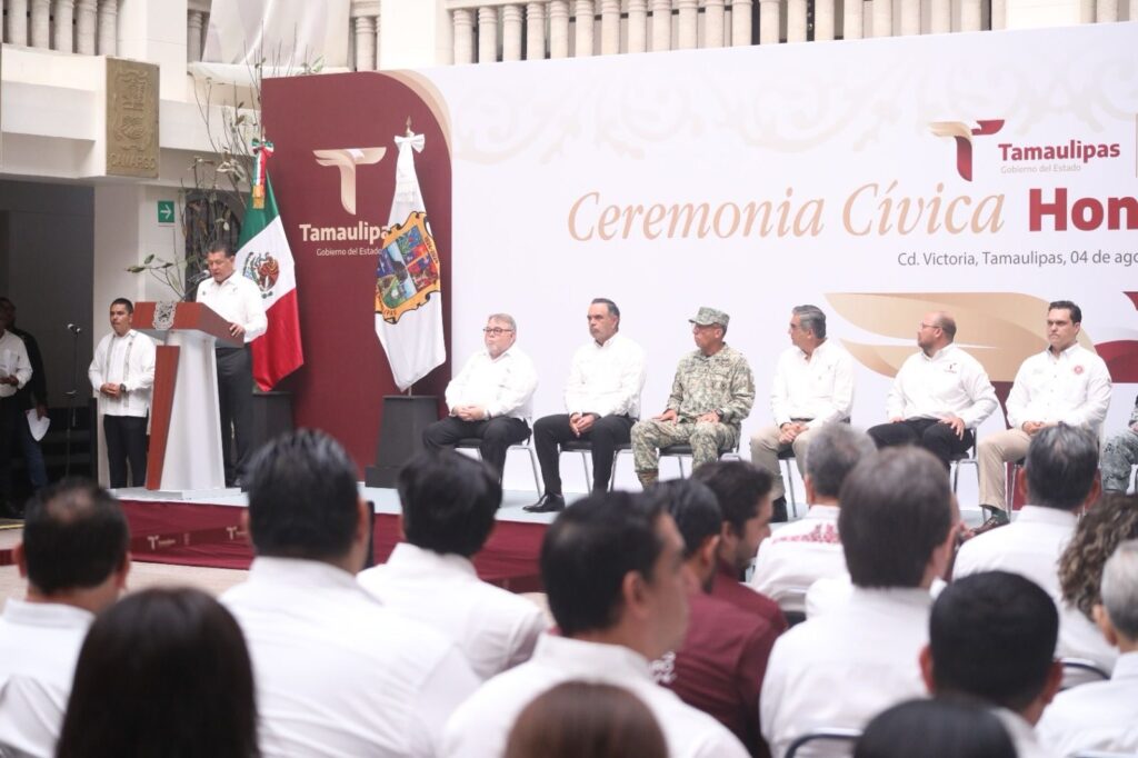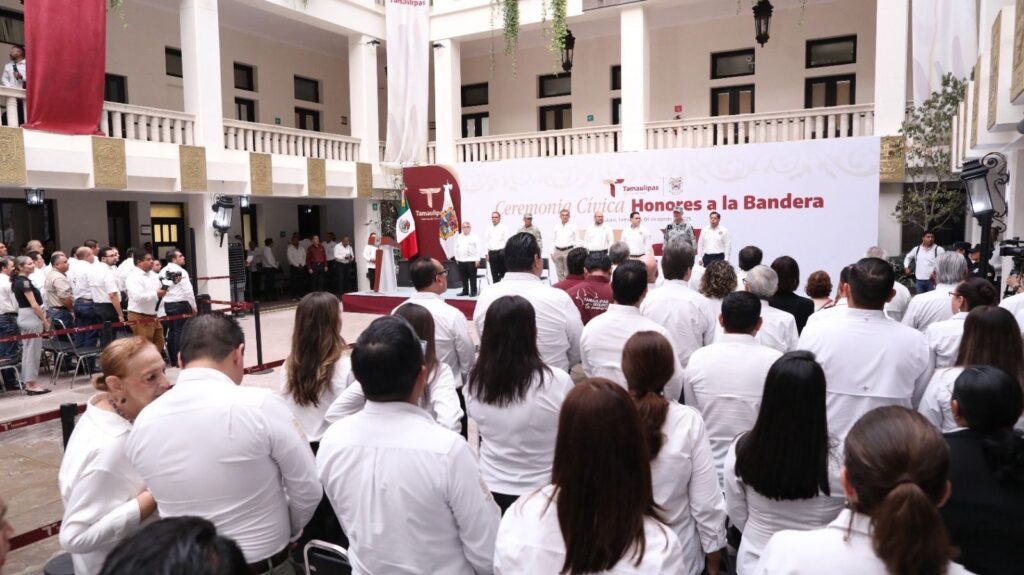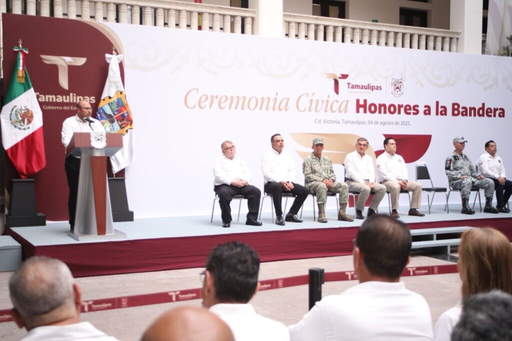Al dar la bienvenida a la ceremonia cívica, Héctor Joel Villegas González, secretario General de Gobierno, hizo un llamado a las y los servidores públicos para seguir el ejemplo del gobernador Américo Villarreal y demostrar que “servir a Tamaulipas no es una tarea de escritorio, sino una causa que se lleva con orgullo, entrega y honestidad”.