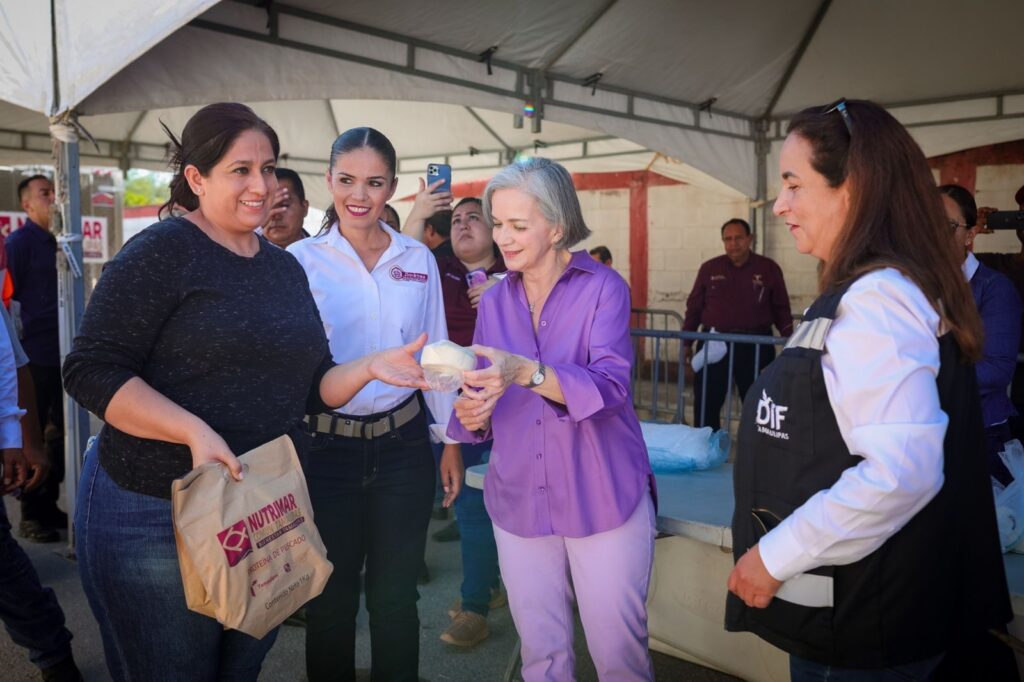 Durante el evento, la presidenta del DIF Estatal destacó el compromiso del Gobierno de Tamaulipas con el bienestar alimentario de las familias más vulnerables.