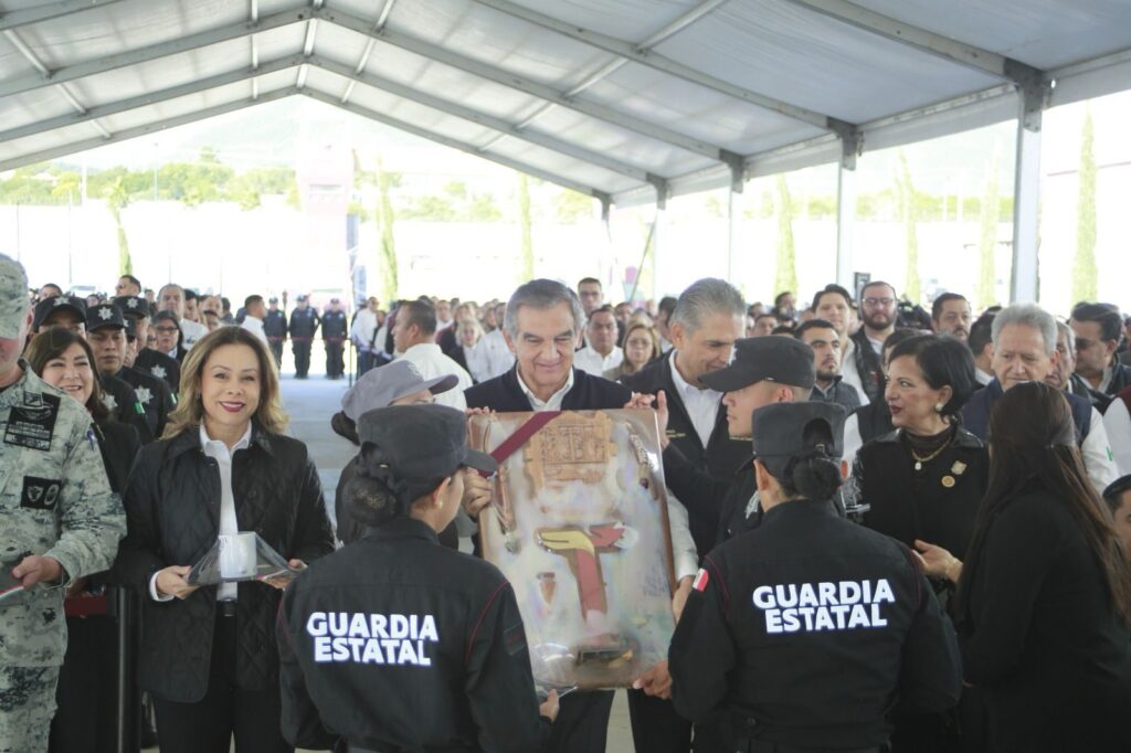 Asimismo se entregó un reconocimiento y estímulo económico a Jorge Patricio Ruiz Salas, autor del nuevo himno a la Guardia Estatal, además de oficios de ascenso de grado y reconocimientos por méritos académicos y deportivos, así como equipo táctico para las y los elementos de la Guardia Estatal.