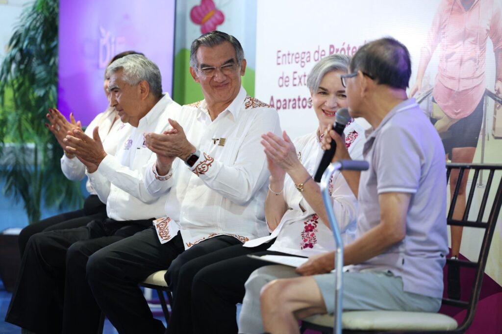 Ciudad Victoria, Tamaulipas.- Con el compromiso de mejorar la calidad de vida de las personas con discapacidad, el gobernador Américo Villarreal Anaya y la presidenta del Sistema DIF Tamaulipas, la doctora María de Villarreal, entregaron prótesis y aparatos funcionales a niñas, niños, jóvenes, adultos y personas mayores que debido a enfermedades o accidentes, perdieron alguna de sus extremidades, a fin de que logren recuperar su movilidad, autonomía y bienestar.