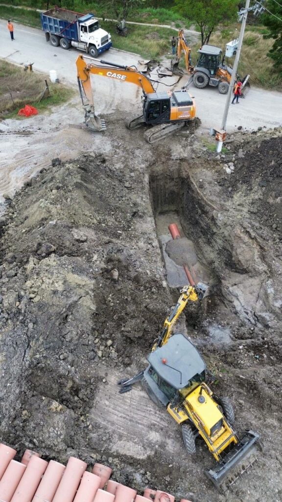 De manera paralela, se realiza la rehabilitación del Colector Zapata, obra prioritaria que permitirá mejorar el sistema de drenaje sanitario, reducir riesgos por encharcamientos e inundaciones y garantizar condiciones más seguras, limpias y saludables para la población.