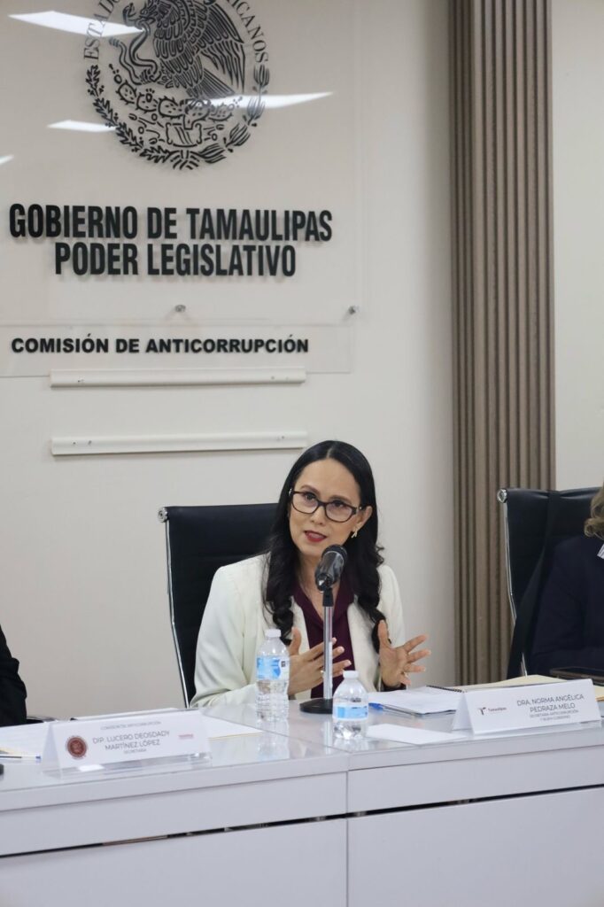 Ciudad Victoria, Tamaulipas.- En cumplimiento con el marco legal de Tamaulipas, se llevó a cabo la comparecencia de la secretaria Anticorrupción y Buen Gobierno, Norma Angélica Pedraza Melo, ante la Comisión de Anticorrupción de la Sexagésima Sexta Legislatura del Congreso del estado de Tamaulipas; presidida por la diputada Guillermina Magaly Deándar Robinson.