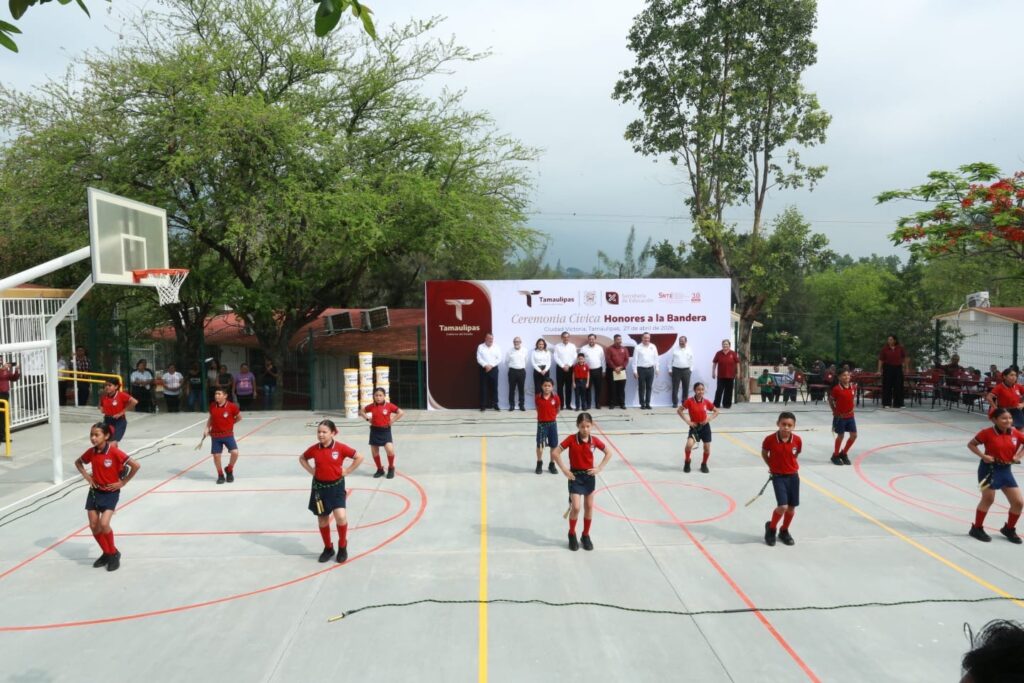 En el evento, el secretario de Educación, Miguel Ángel Valdez García, expresó que, además de las obras de infraestructura que hoy se entregan, el gobernador también enviará este día el nuevo escudo de Tamaulipas a todas las escuelas.